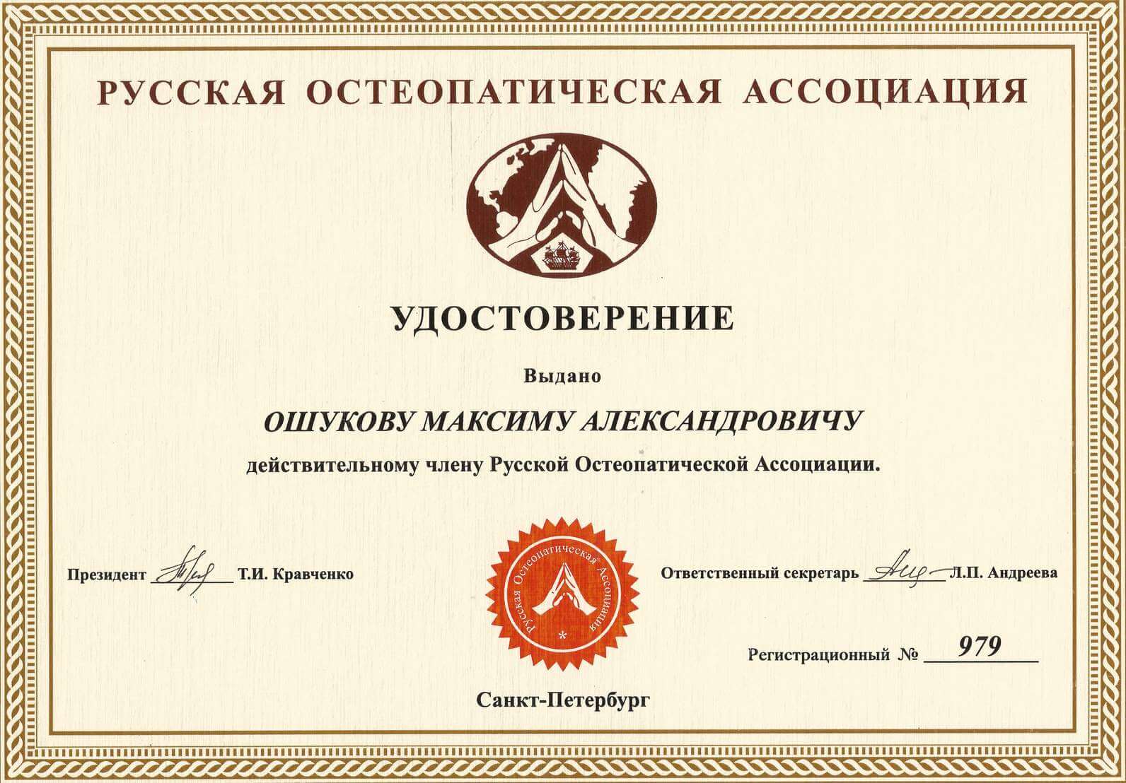 Сертифицированный член Российской Остеопатической Ассоциации (РОСА)
