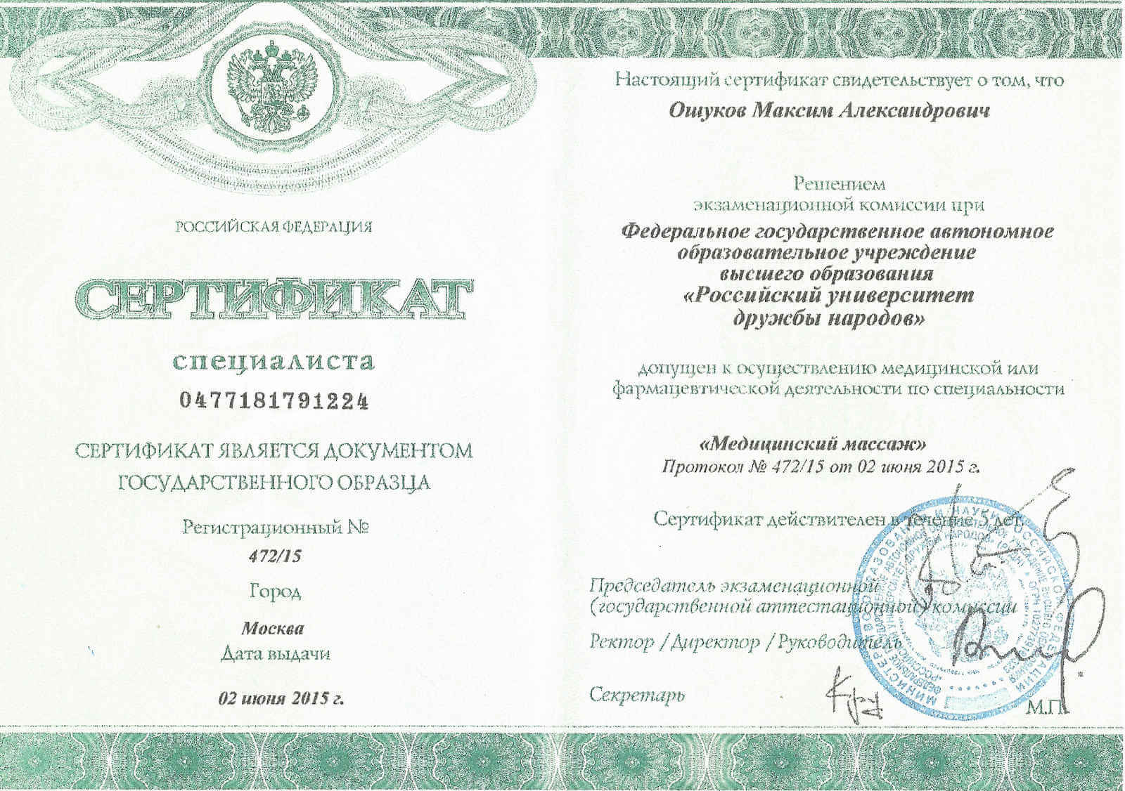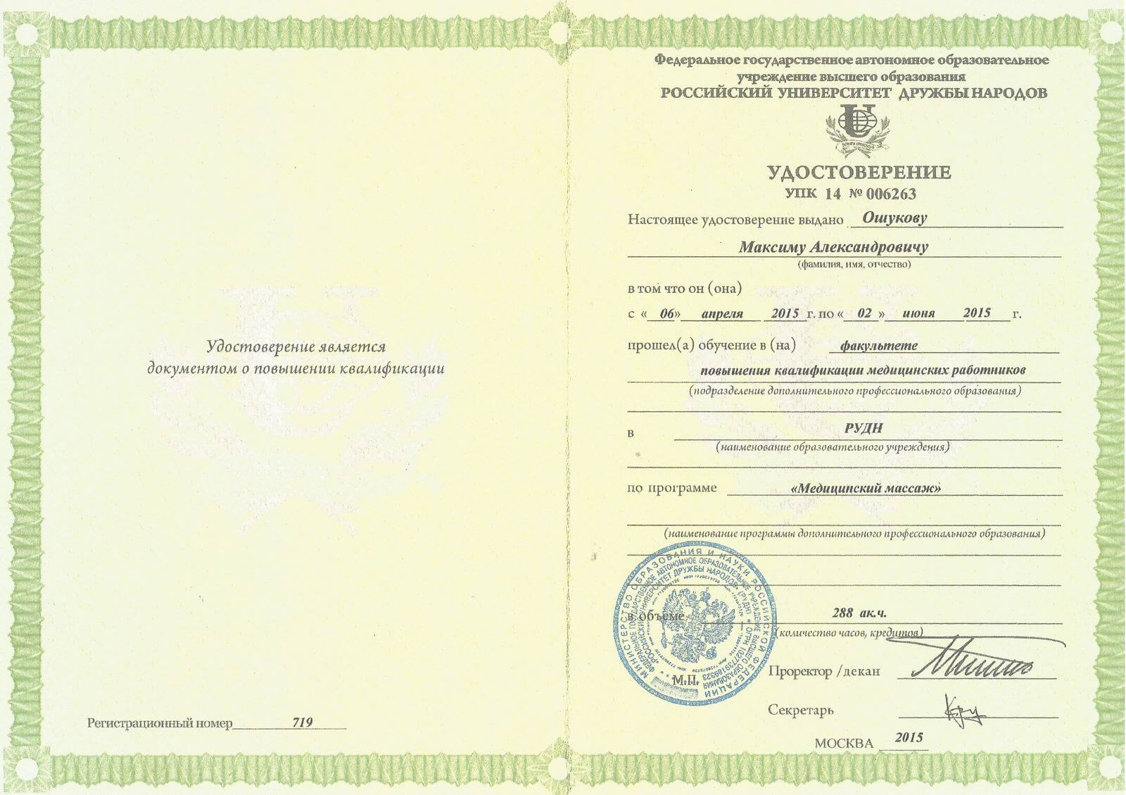 2015 - повышение квалификации медицинских работников РУДН "Медицинский массаж"