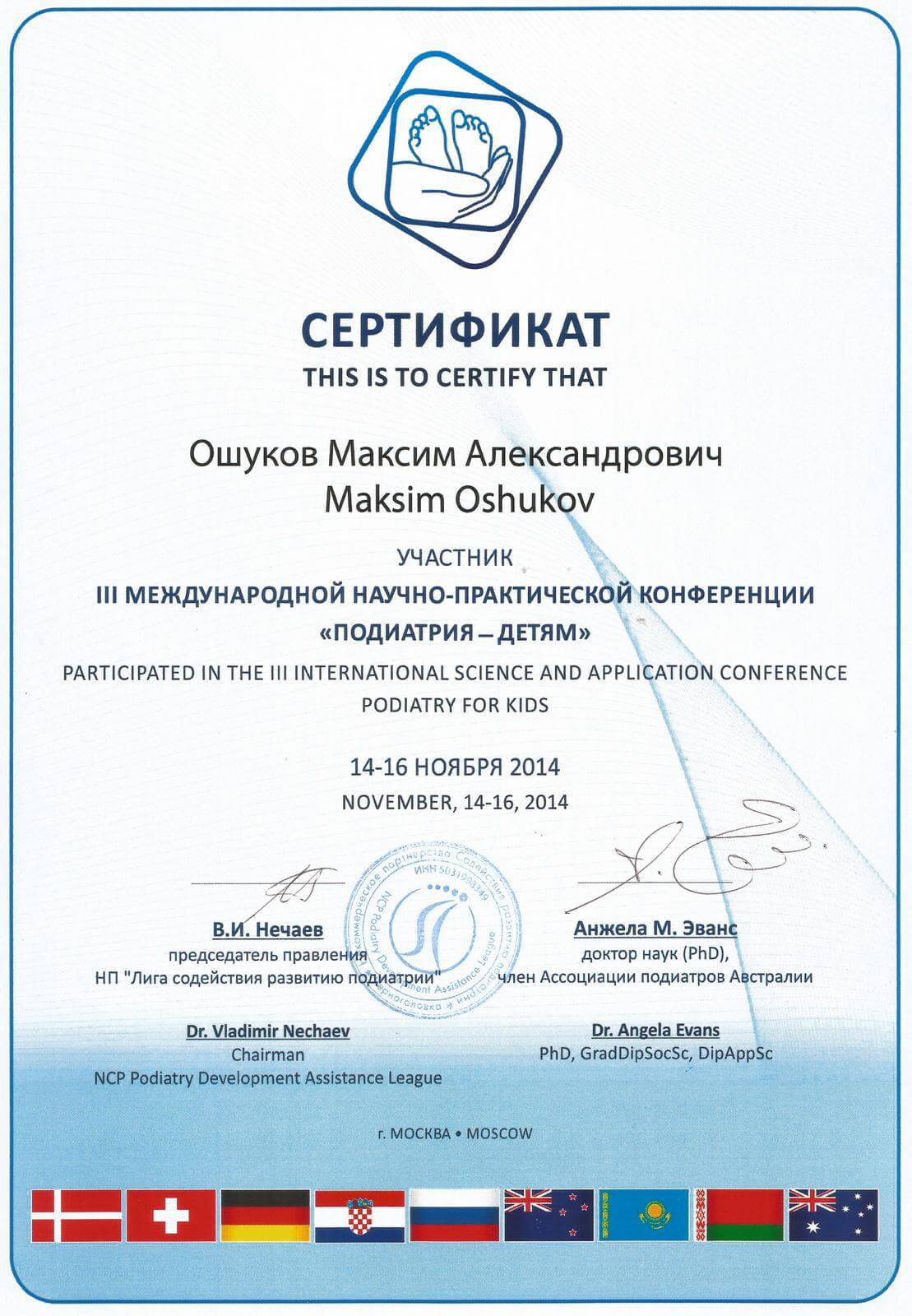 2014 - участие в III Международной Научно-практической Конференции "Подиатрия - детям"