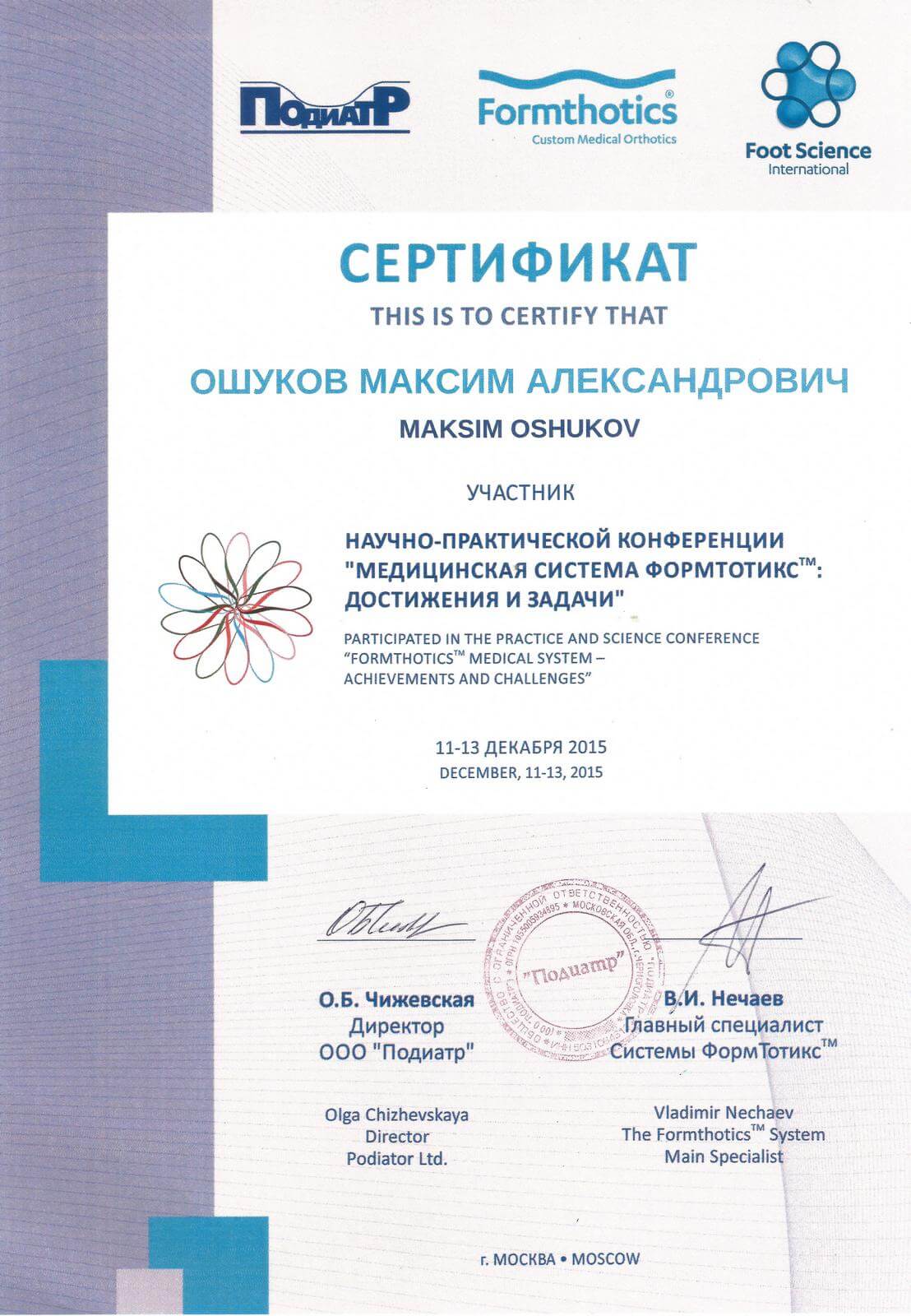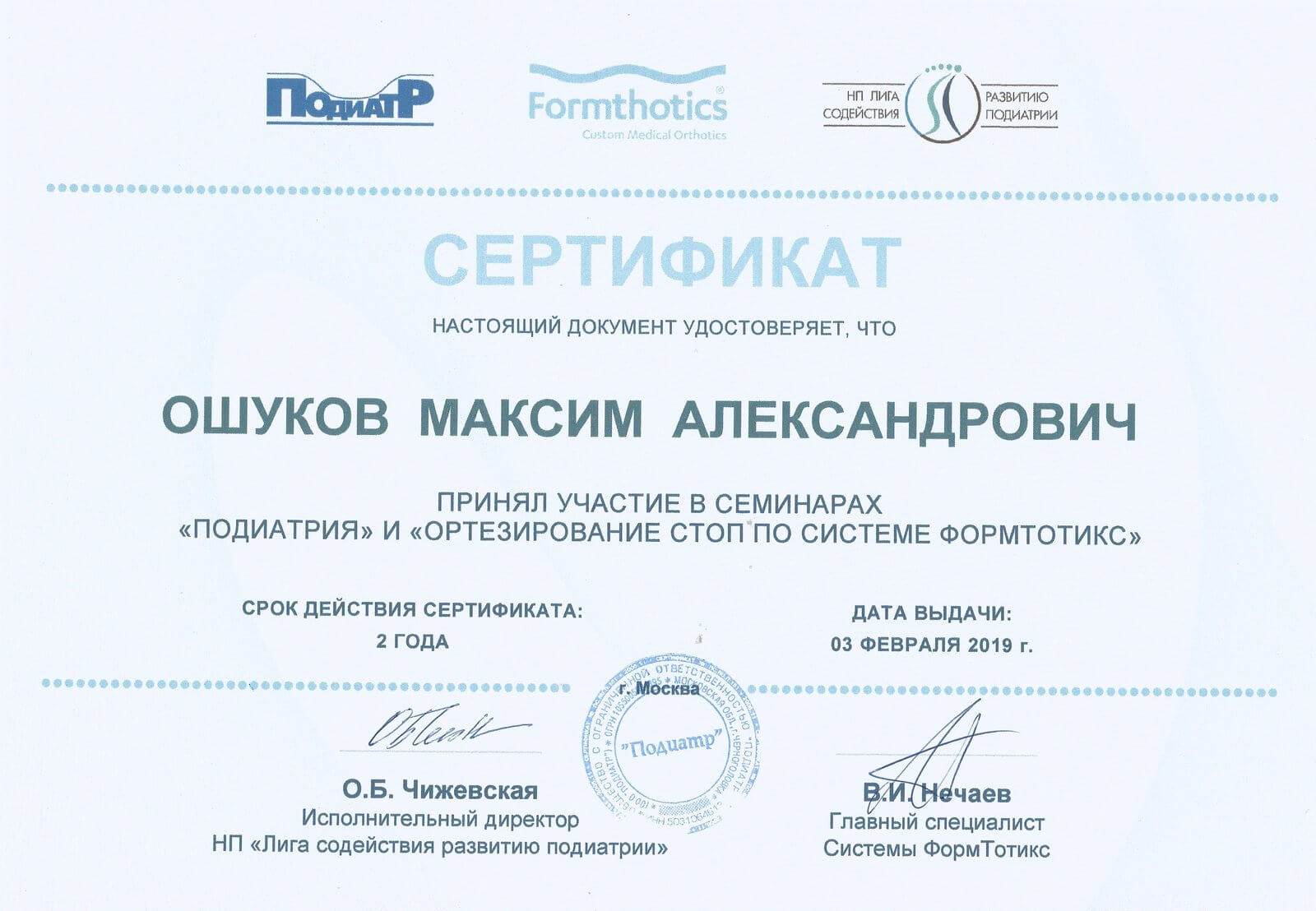2013 - успешно прошел курс «Подиатрия и ортезирование стоп» по системе «Formthotics»