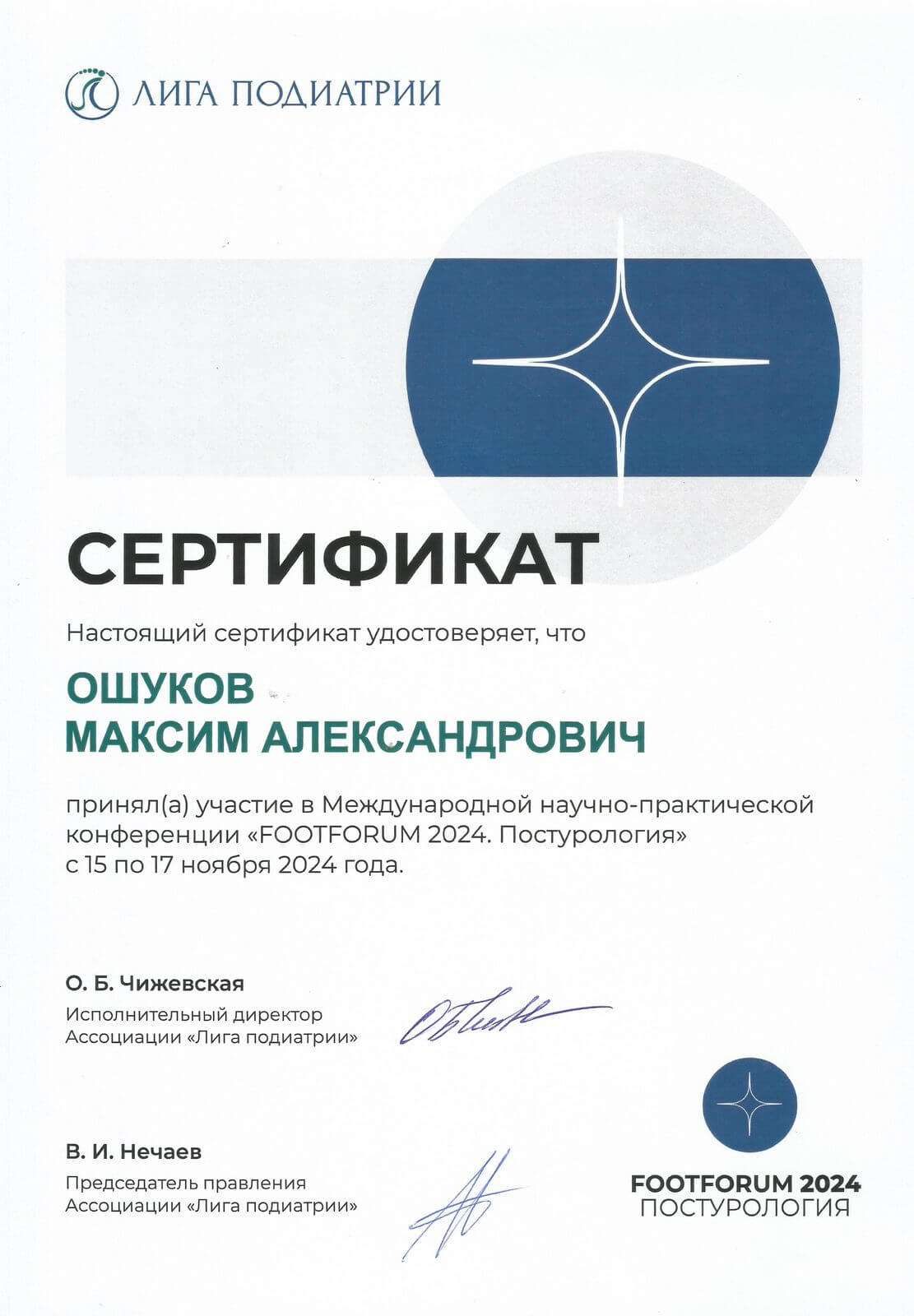 2024 - Лига подиатрии участие в Международной научно-практической конференции "FOOTFORUM 2024. Постурология"