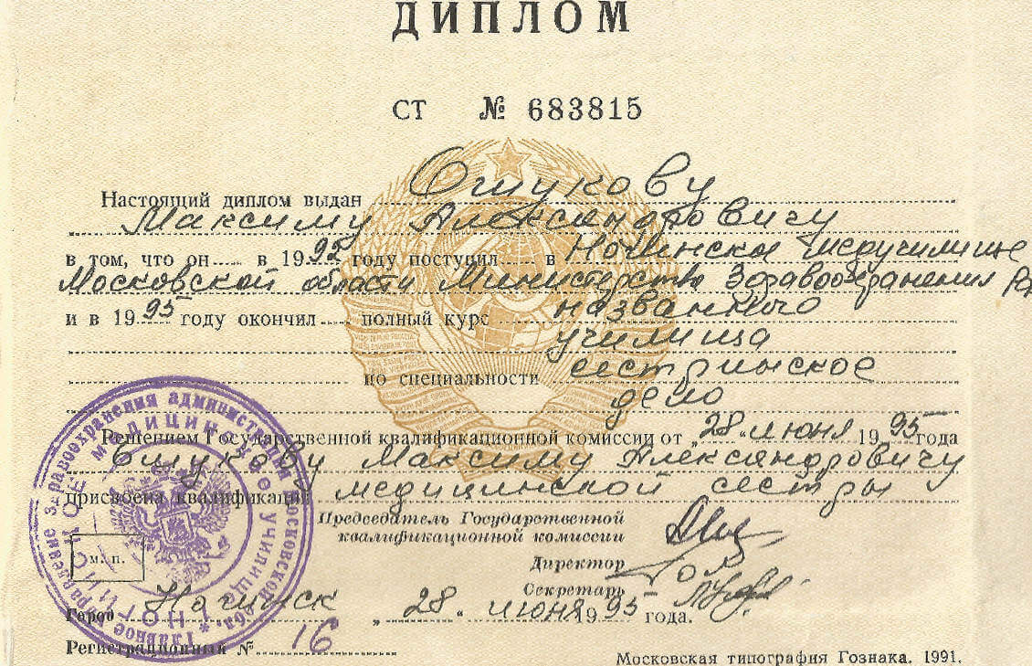 1995 - Ногинское медицинское училище по специальности "Сестринское дело"