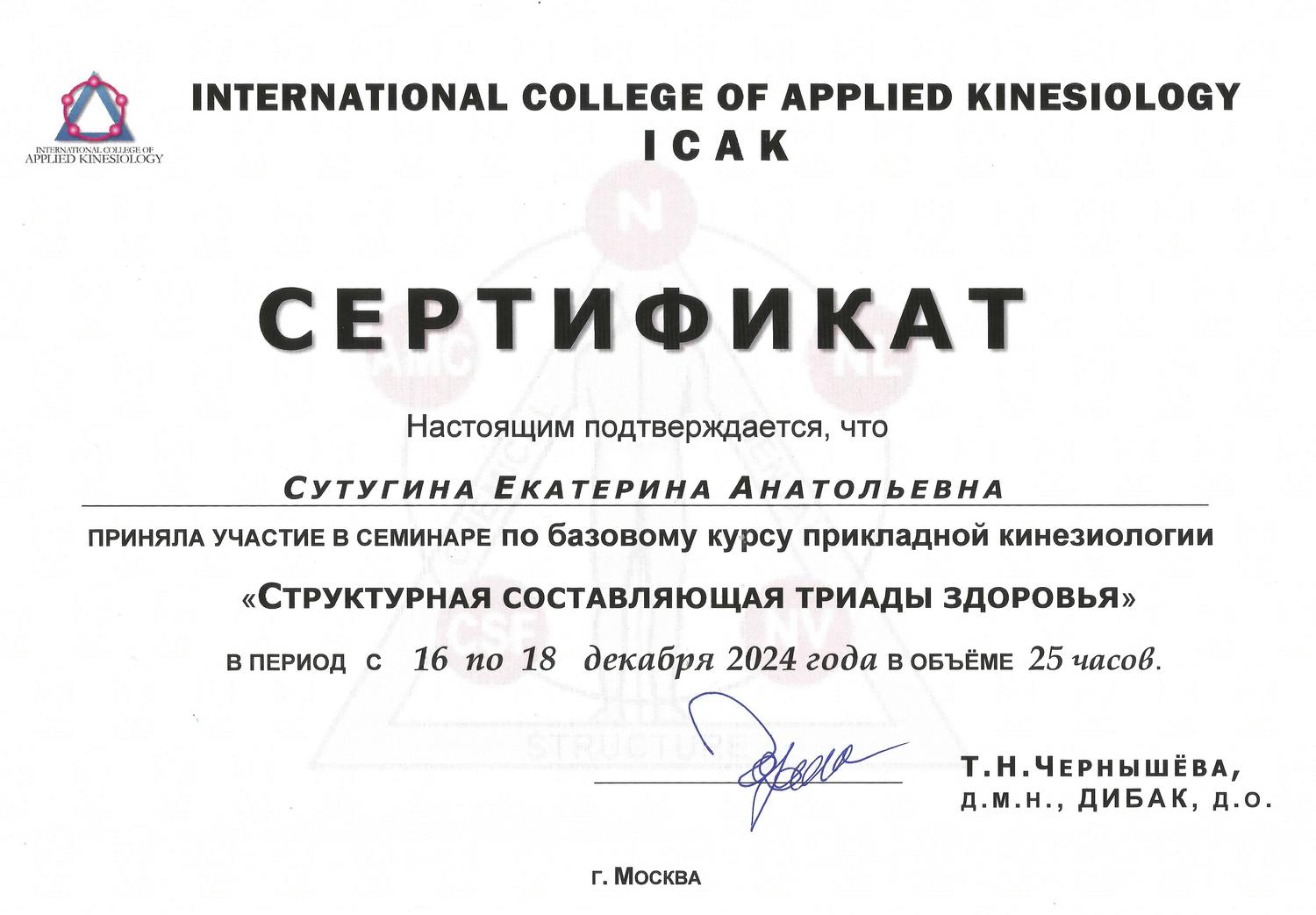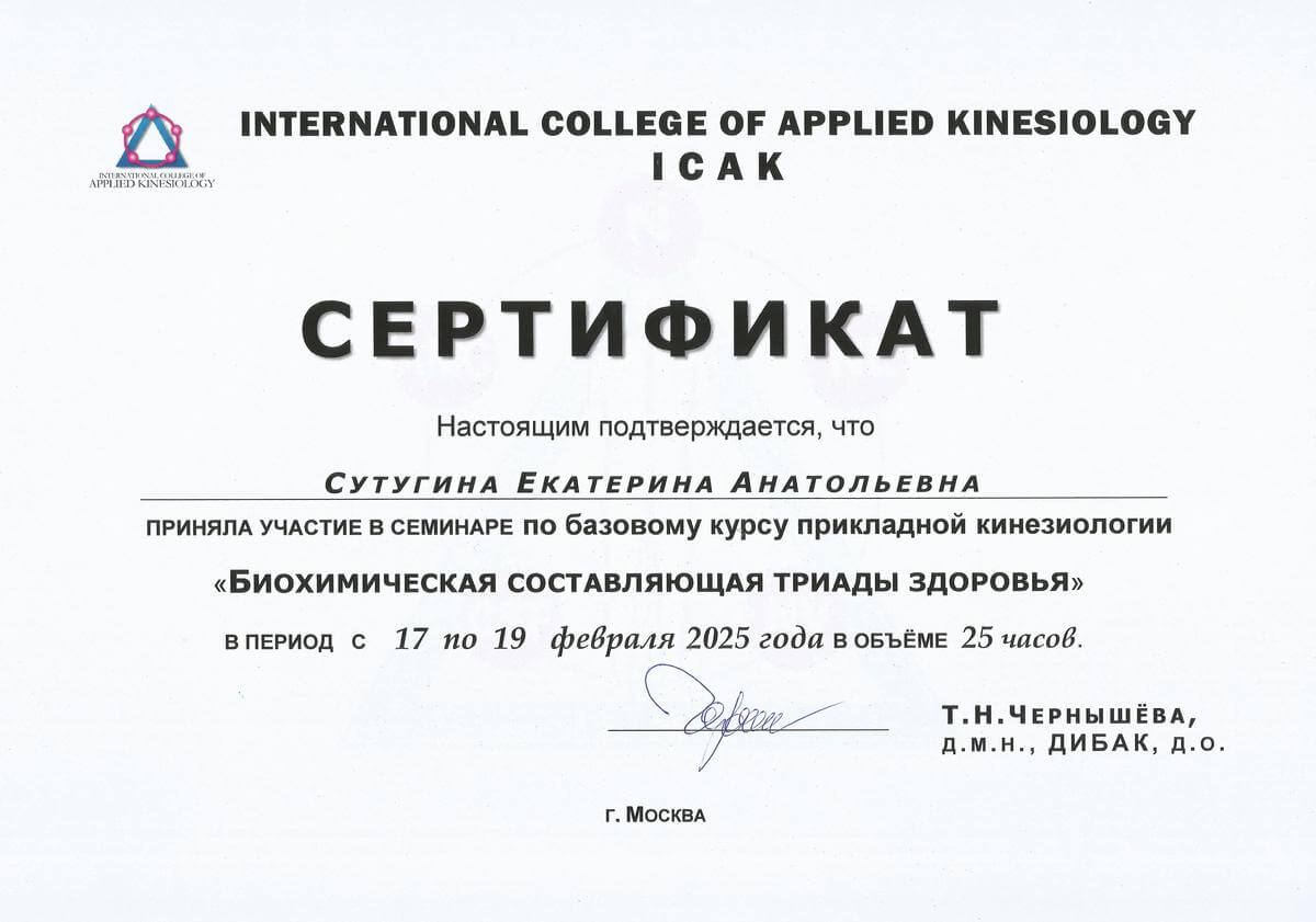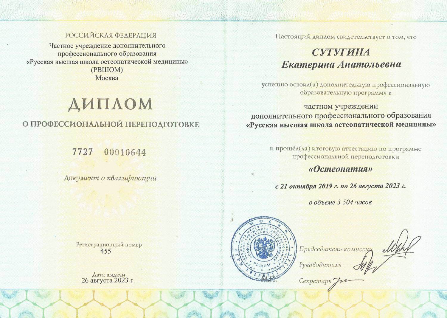 2023 – профессиональная переподготовка в Русской высшей школе остеопатической медицины г. Москва по специальности «Остеопатия». Дипломная работа по теме «Метаболически ассоциированная жировая болезнь печени».